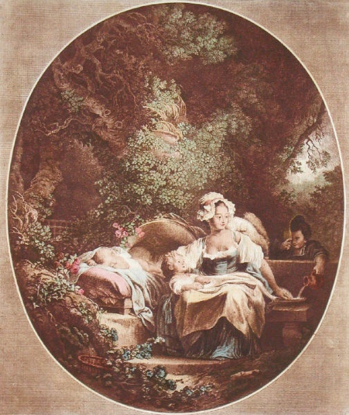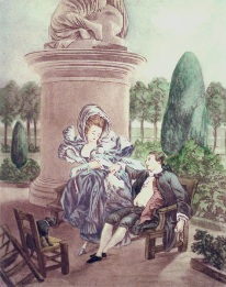 Hand colored etchings and engravings featuring romantic French scenes. Ideal as special and long lasting gifts, also for bedroom decoaration.